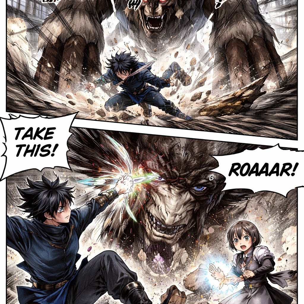 A man in a robe with a purple sword who fought a big dragon and the dragon lost