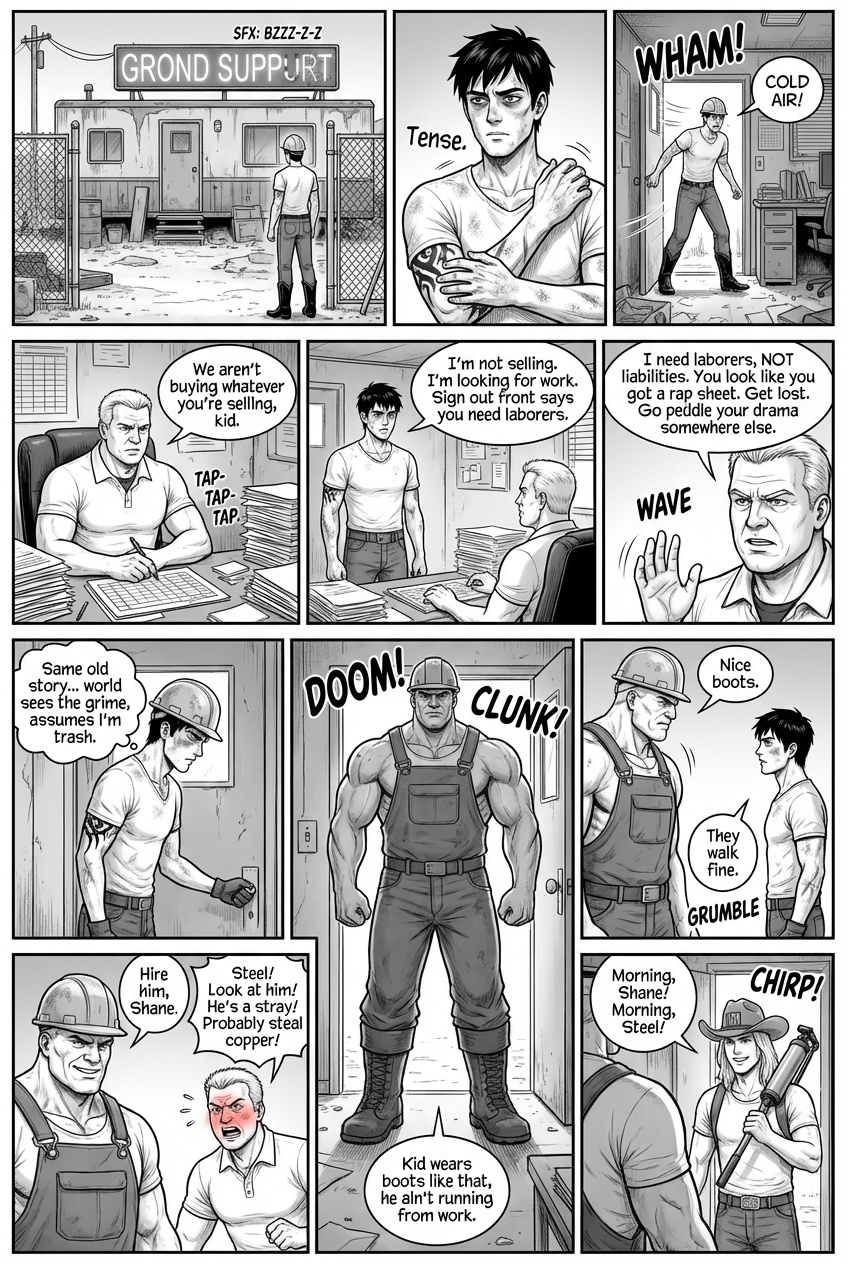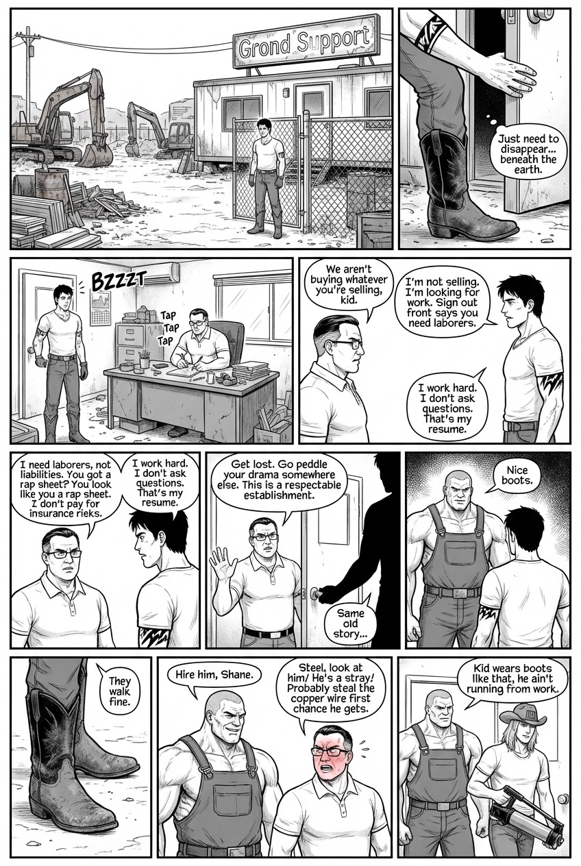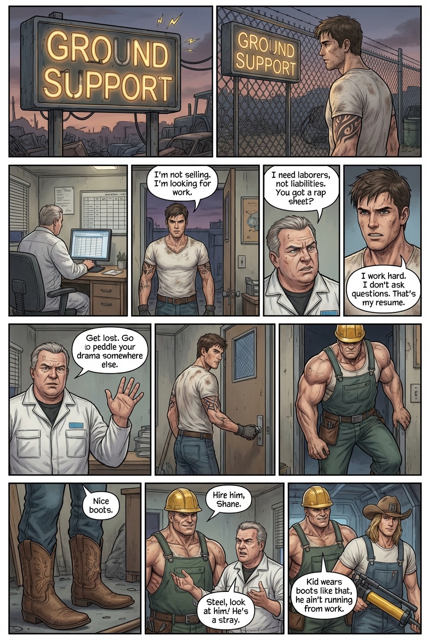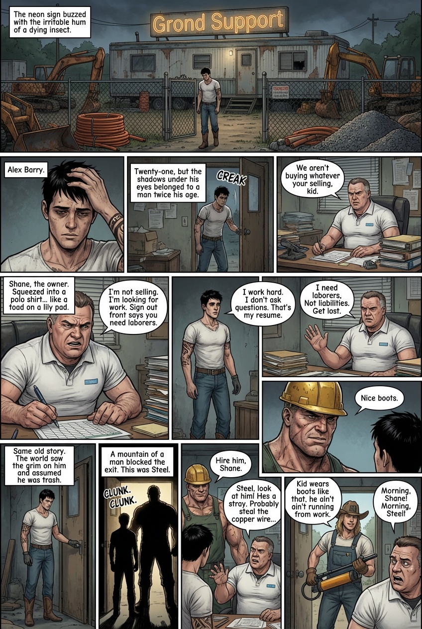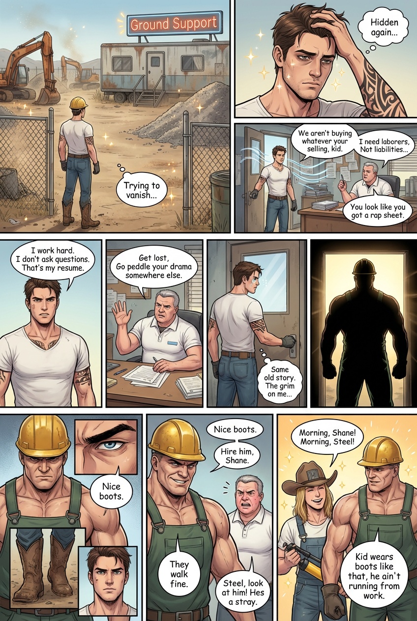 The walk up to the main house was short, a gravel path lined with solar lights that flickered weakly in the twilight. Steel’s property was an oasis of rural quiet, a stark contrast to the neon anxiety of the Starlight Motel. As they approached the house, the golden glow of the kitchen windows spilled out onto the porch. They wiped their boots on the mat; a ritual Steel performed with a surprising delicacy and entered. The kitchen was warm, smelling of rosemary, roasted beef, and yeast rolls. Stephanie was at the stove, stirring gray with the focus of a chemist. “He’s here,” Steel announced, Hanging his keys on a hook. Stephanie turned, wiping her hands on her white apron with a giant red A on it. “About time, Wash up Alex. Use the good soap, not that grease cutter stuff Gerald keeps by the sink.” It was then that Alex noticed they weren’t alone. Sitting at the round oak table, nursing a glass of iced tea, was a young woman. She looked up as he entered, and Alex felt his boots root to the floor. She was petite, perhaps a few inches shorter than him, with long, chestnut hair that fell in loose waves over shoulders. She wore oversized tortoise shell glasses that magnified eyes, the color of polished sapphire. She was wearing scrubs- navy blue with a stethoscope still draped casually around her neck like a scarf. “Alex,” Stephanie said, gesturing with a gravy ladle. “This is Devon. She works with me at the hospital. Devon, this is the stray Gerald brought home.” Alex could feel the heat creeping up his neck as he mumbled. “I’m not a stay, I’m an employee.” Devon smiled, and it changed her whole face, softening the intelligence in her eyes into something warmer. “Nice to meet you, Alex the Employee. Steph say’s you’re the one who saved your boss from a falling plate?”