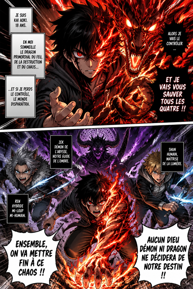 Un ado mèche blonde doré cheveux noir et un hybride mi humain mi loup cheveux noirs mèche blanche yaoi