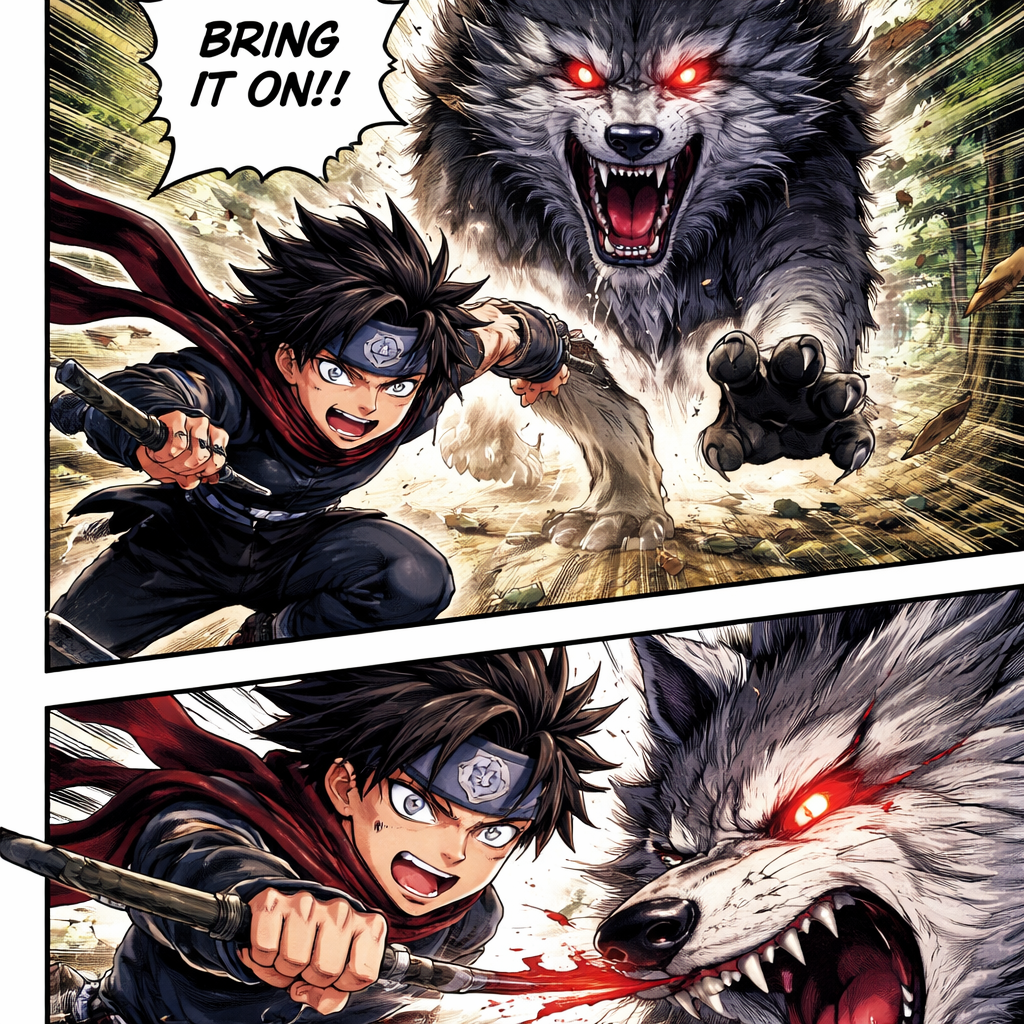 Ken blinked out of view, reappeared behind Aki, and swung a crowbar through a slowed-time loop. Aki dodged effortlessly and countered with a surge of kinetic energy that sent Ken tumbling.