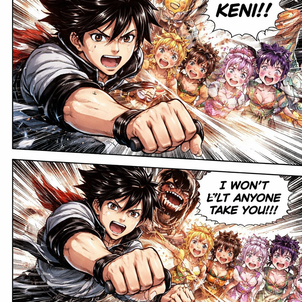 AI creates your manga instantly. Download in high quality or share online!