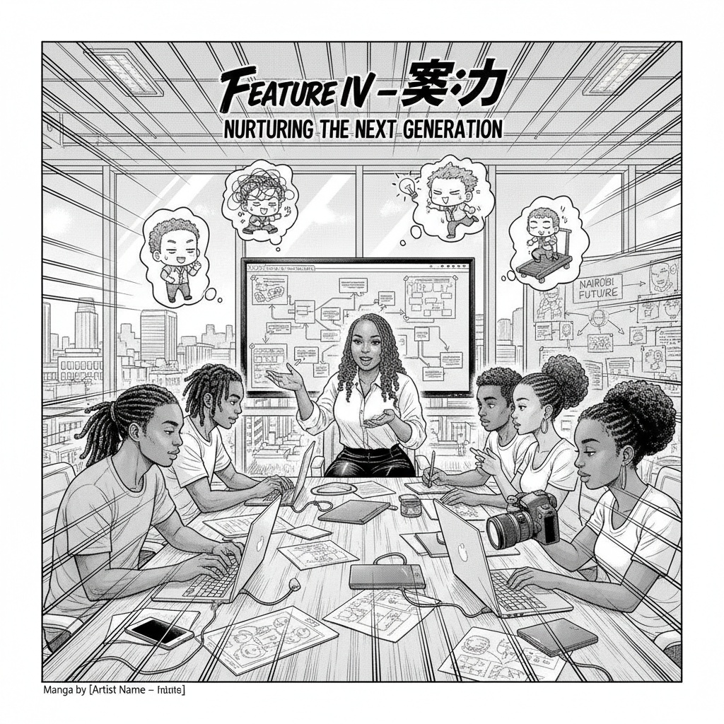 Laptops, cameras, manga-style brainstorming scenes with chibi inserts for humor.